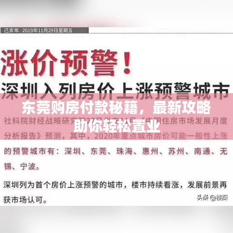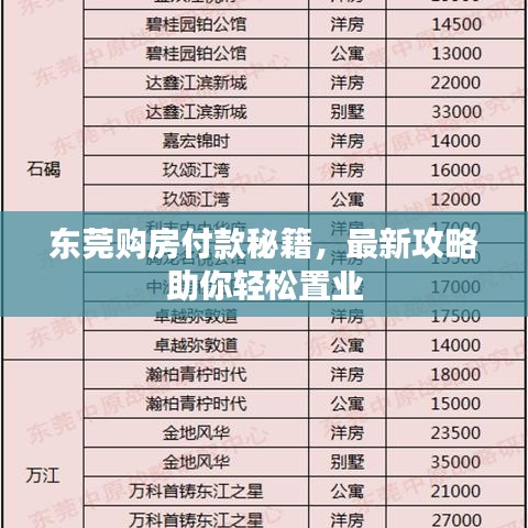 随着东莞经济的持续繁荣和城市化进程的加快,越来越多的人选择在东莞购房,本文将为您提供一份详尽的东莞买房付款攻略,帮助您更好地了解购房过程中的各项付款事宜,为您的购房之旅提供便利。
