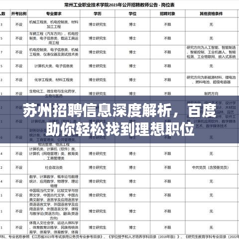 通过百度搜索“苏州招聘信息”,你可以轻松找到理想的工作机会,关注市场动态、筛选合适职位、准备简历、参加招聘会和网络招聘会以及提高自身竞争力都是找到好工作的关键,希望这篇文章能为你找到理想的工作提供帮助。